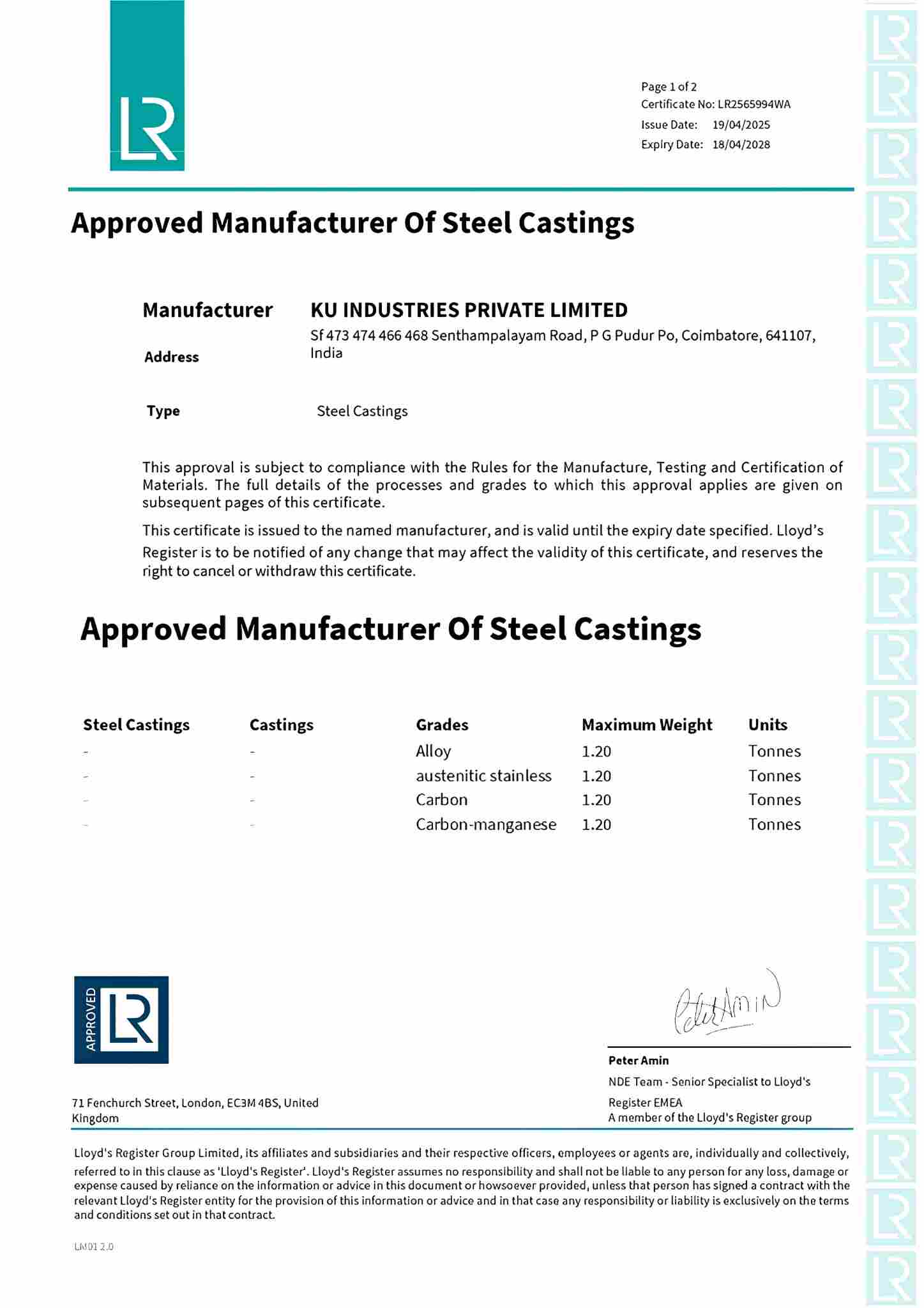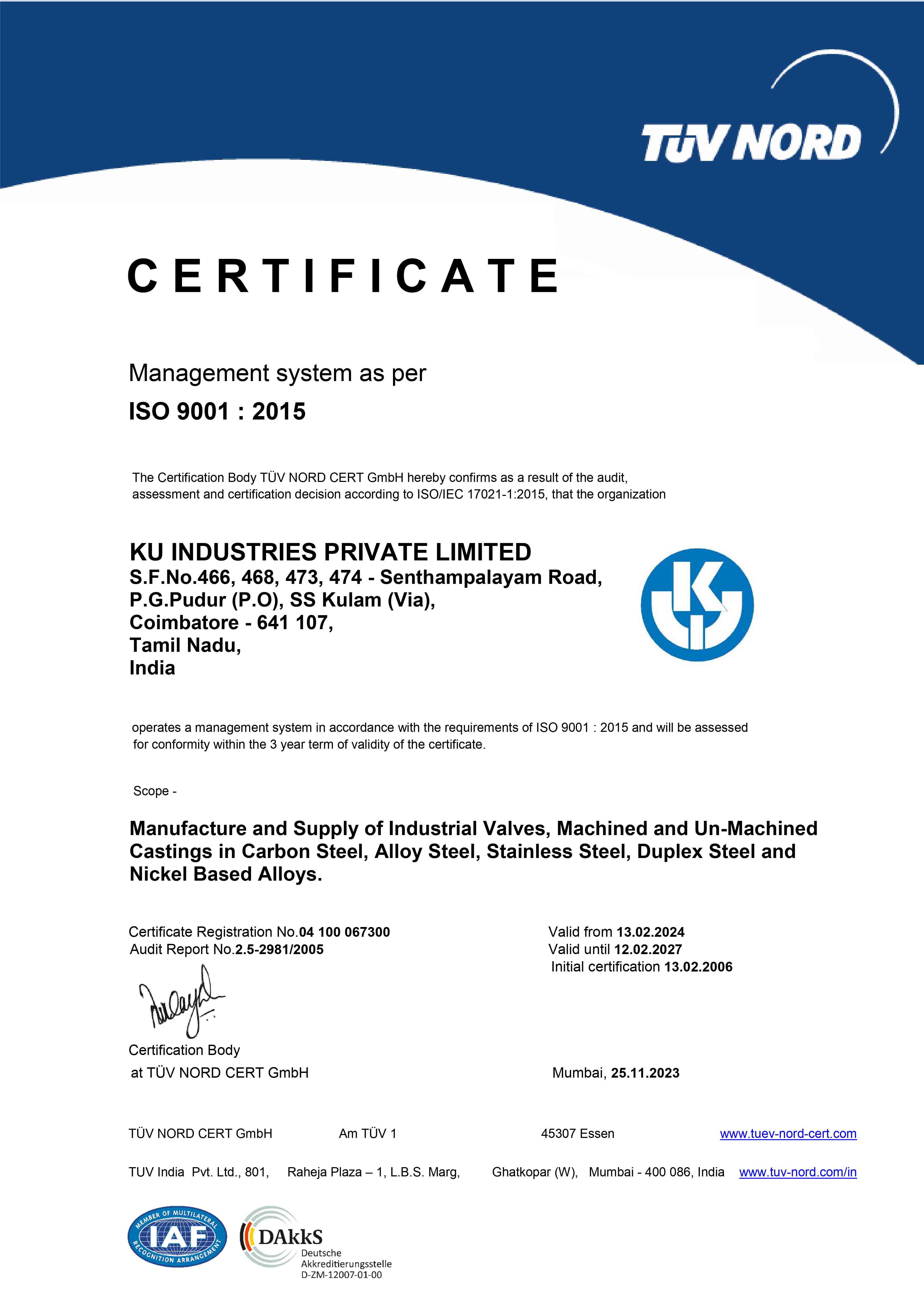 KU Industries Private Limited is an ISO 9001:2015 & PED certified, steel foundries with no-bake sand foundry and a machine shop. We produce steel castings in weights ranging from 15 kg to 6000 kg in a wide variety of materials including stainless steel, carbon steel, wear-resistant, heat-resistant steel and various high nickel alloy materials including monel, duplex steel and more.